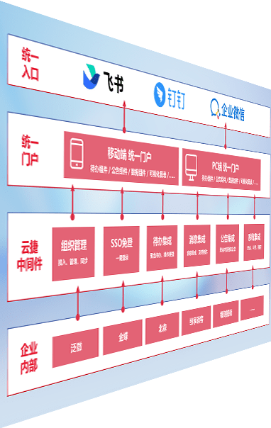 对协作平台提供支持服务,,支持企业应用与协作平台对接,,,,包含组织同步、、、消息集成、、待办集成等。。。支持目前主流的协作平台:钉钉、、、、企微和飞书。。。。